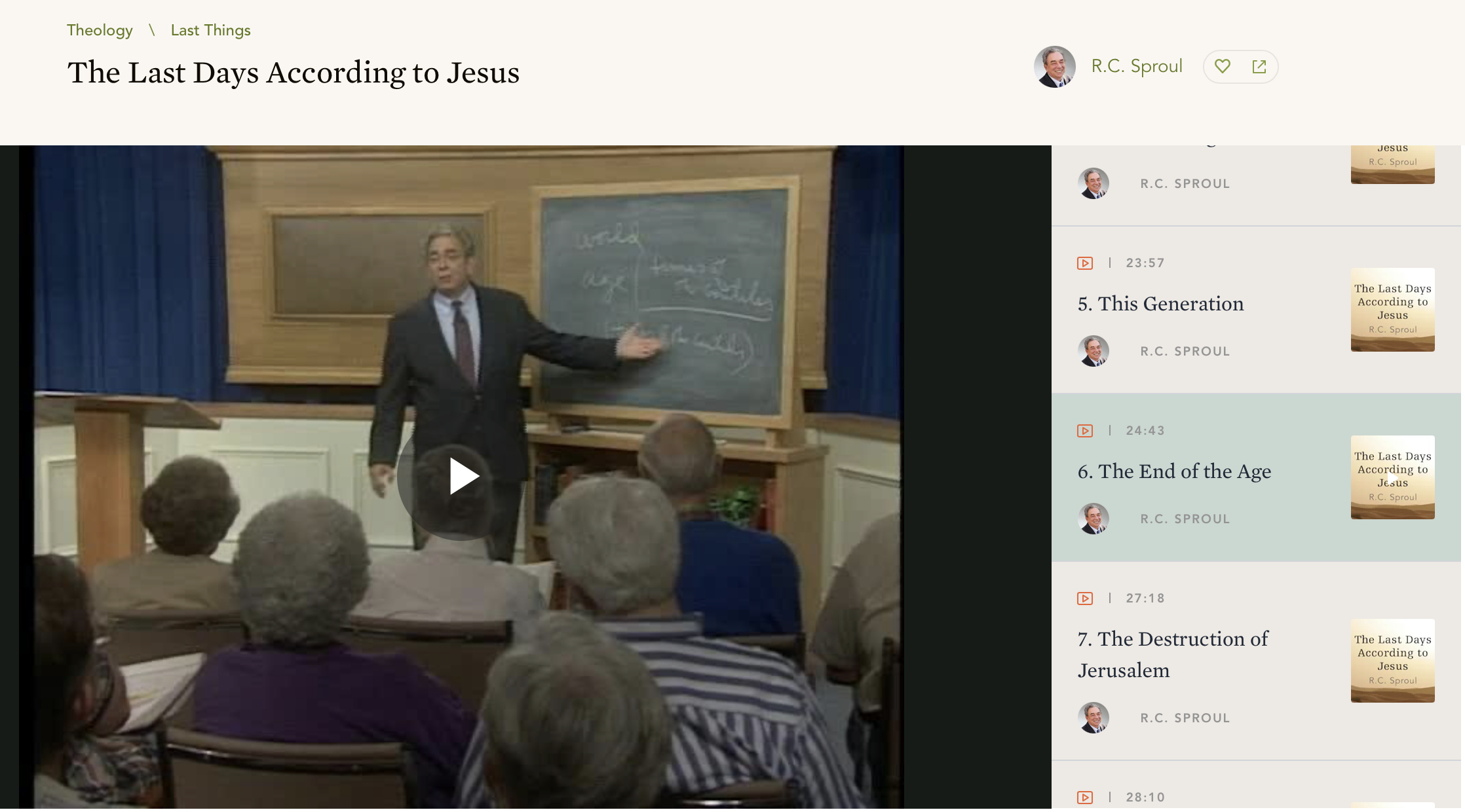 The standout of the week is the RC Sproul series on the Last Days. When we visited our son’s church on Sunday, the pastor preached on Revelation. He said though Christians differ on the last days, you should still care about it.